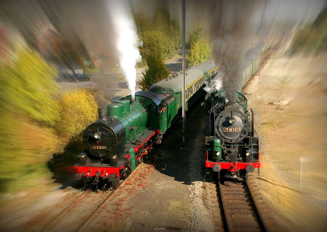 Deze A4 2026 kalender heeft 12 oude ingekleurde ansichtkaarten en 12 kleurenfoto's van treinen, stations en trams.
